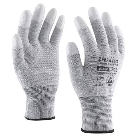 1 kép Karbonszálas poliészter ESD kesztyű PU ujjvégmártással, gazdaságos változat (ZEBRA-1-ECO)