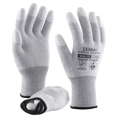1 kép Karbonszálas poliészter ESD kesztyű PU ujjvégmártással (ZEBRA-1-V)