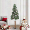 Karcsú karácsonyfa Zöld és Fehér 210 cm PVC és tömör fenyőfa