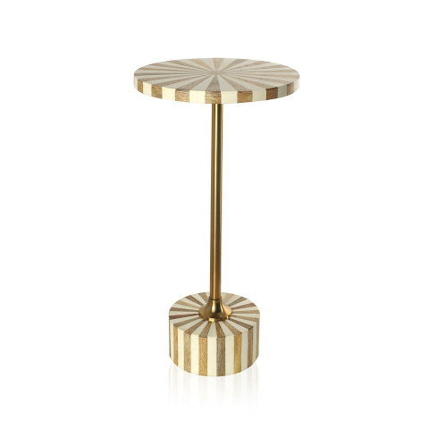 KARE Domero Cirque 25 Mangófa Kisasztal Fehér-Arany Sugaras Mintával bútor termékleírás