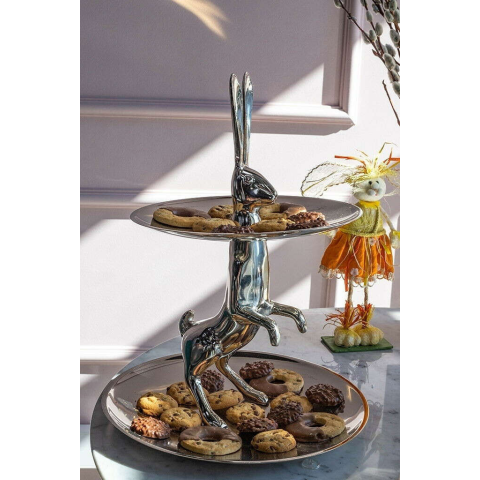 KARE Bunny Nyúl alakú kétszintes tálaló: Elegáns és vidám tálalás ünnepekre és minden napra 🐰 Ez a gyönyörű, ezüst színű kétszintes tálaló egy igazi különlegesség, amely feldobja az asztalt bármilyen alkalommal. A vidám nyúl alakú talapzat egyedi me...