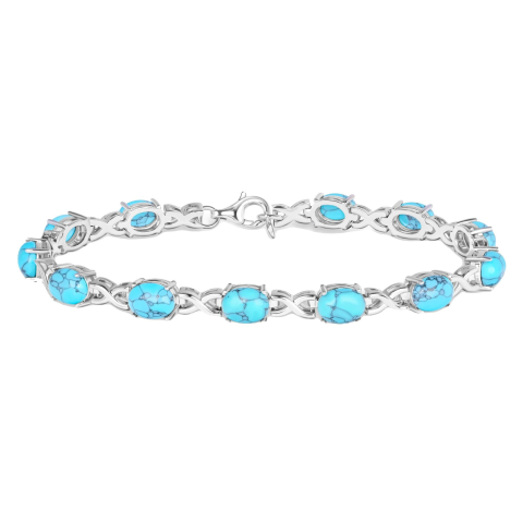Elegáns türkiz karkötő 925-ös ezüstből - Tökéletes ajándék! 🎁 Ez a gyönyörű, kézzel készített karkötő a 925-ös ezüst eleganciáját ötvözi a türkiz kő természetes szépségével. Ideális választás különleges alkalmakra vagy a mindennapi stílus feldobására...