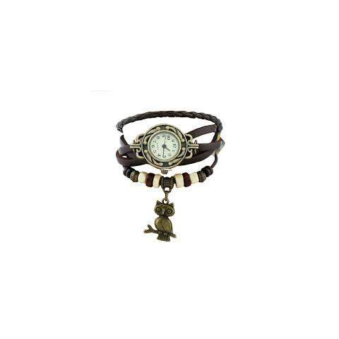 Karkötős karóra bagoly medállal fekete műbőr szíjjal karóra termékleírás