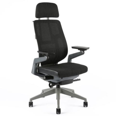 Az OfficePro Karme Mesh ergonomikus irodai szék kárpitozott fejtámlával lehetővé teszi, hogy a széket egész napos ülésre használják az irodában vagy otthon, különösen az aktív ergonomikus deréktámasznak köszönhetően, amely támogatja az egészséges ülést és egészségesebb ülőhelyzetet biztosít. Ehhez hozzájárul az állítható fejtámla is, amely lehetővé teszi a nyaki gerinc ellazulását, amikor a fej megdől.