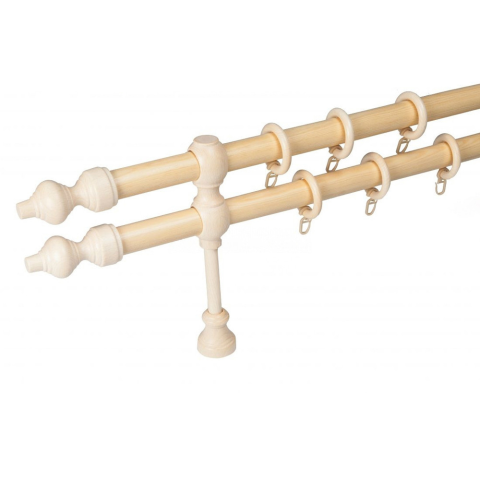 - 1 db dupla fa tartókonzol, 28 mm-es fa rúdkarnishoz a felszereléshez szükséges csavar és tipli mellékelve.