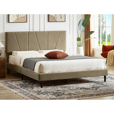 A Kárpitozott ágy SAVANA VELVET bézs színben elegáns dizájnt és maximális kényelmet hoz a hálószobába. A puha kárpitozás minőségi bársony Bluvel szövetből készült, amely kellemes tapintású felületet biztosít, míg a magas, díszes varrású fejtámla nemcsak támaszt nyújt pihenés közben, hanem stílusos elemet is képvisel.