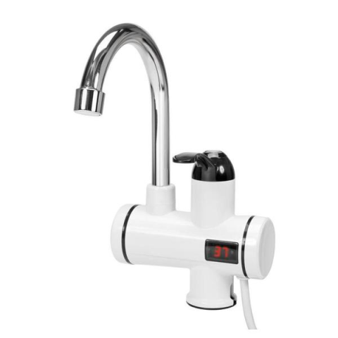 KATLA-1 álló csaptelep átfolyós vízmelegítővel — 3 kW TO-75921JellemzőkÁlló (padlóra/falhoz rögzíthető) csaptelep beépített átfolyós vízmelegítővel (instant).Gyors melegítés: intelligens üzemmód, kb. 60 °C elérése ~5 másodperc alatt (a bemeneti víz hőmérsékletétől és a víznyomástól függően).LCD kijelző a hőmérséklet és üzemállapot egyszerű ellenőrzéséhez.Egy készülékben hideg és meleg víz, kompakt megoldás nyaralókba, kempingekbe, für