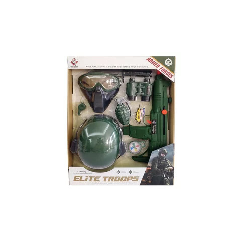 Katonai sisak és fegyverszett, 8 db katonásdi 1 kép