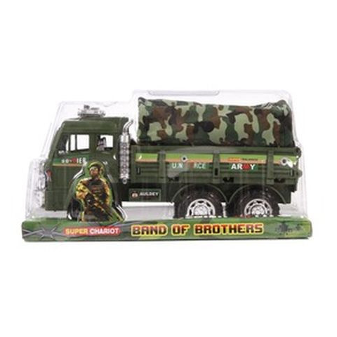 Szállíts csapatokat és fegyvereket a katonai teherautóval! Ez a műanyagból készült szállítójármű ponyvával védi a platóját, így biztonságosan juttathatsz célba minden rakományt.