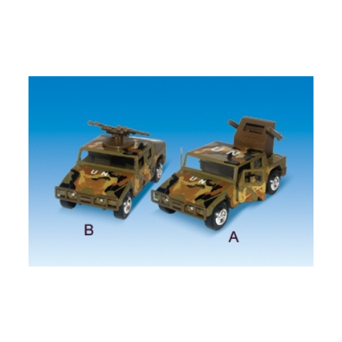 Katonai terepjáró A Katonai teherautó egy műanyagból készült szállítójármű 3 db AA elemmel mükődik (nem tartozék) Belsejében tankot szállít. A vagány katonai teherautó együtt használható más katonai játékkészletekkel is. Jellemzői: - Anyaga: Műanyag - M