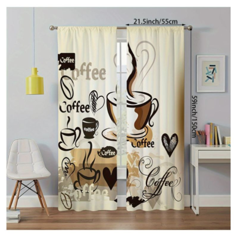 Kávés dekoratív függöny – 2 db LP97478 Kávés dekoratív függöny – 2 db LP97478 Hozza el otthonába a kávézás meleg és meghitt hangulatát ezzel a kávé témájú dekoratív függönyszettel! A vintage stílusú, elegáns minta és a puha őszibarackbőr velúr szövet