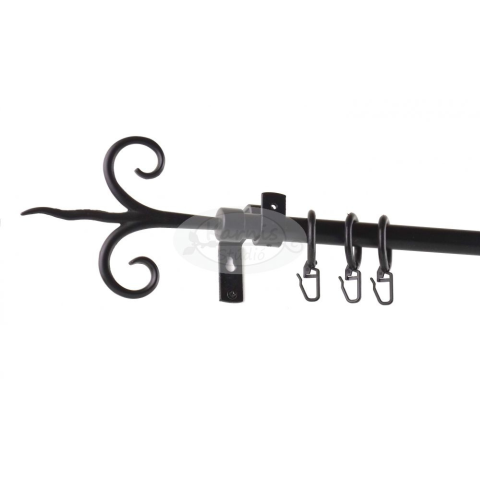 A KECSKEMÉT fekete 240 cm-es 1 rudas fém karnis szett tartalma: 1 db 240 cm-es fekete fém karnisrúd 2 db Kecskemét típusú fekete fém végzáró 3 db falra szerelhető fém konzol a felszereléshez szükséges tiplik és csavarok 24 db fekete műanyag karika feket