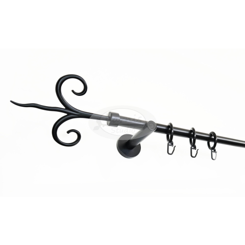 A KECSKEMÉT fekete 1 rudas, 160 cm-es, modern tartós fém karnis szett tartalma: 1 db 160 cm-es, 16 mm átmérőjű, fekete fém karnisrúd 2 db Kecskemét típusú fekete fém végzáró 2 db falra szerelhető modern fém konzol 16 db fekete műanyag karika fekete színű