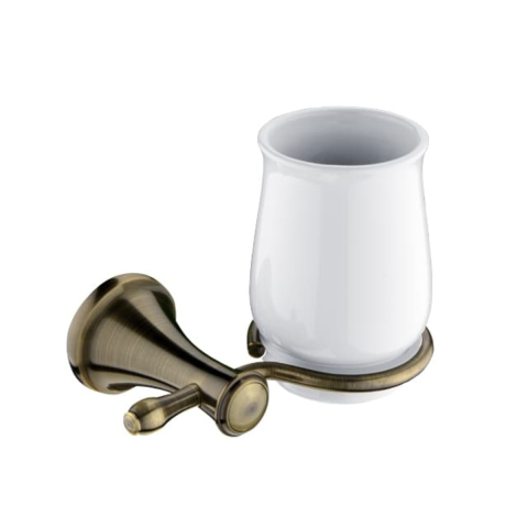 Kerámia pohártartó. Anyaga sárgaréz, antikolt sárgaréz kivitelben.
