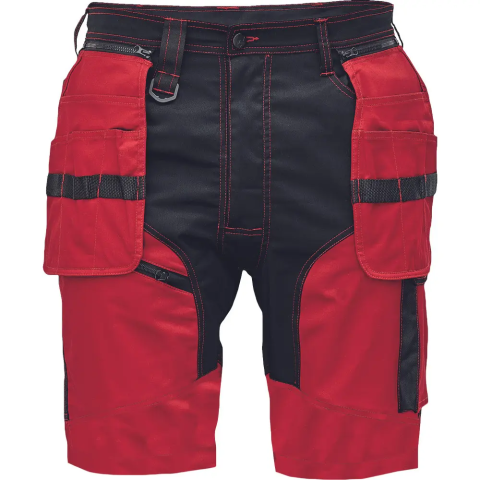 KEILOR FP STRETCH rövidnadrág piros 50 • férfi munkanadrág rugalmas derékkal • elöl 2 szerszámzsebbel, 1 cipzáras oldalzsebbel, 1 zsebfedős oldalzsebbel a szárakon, 2 zsebfedős hátsó zsebbel, D-gyűrűvel • dekoratív varratok