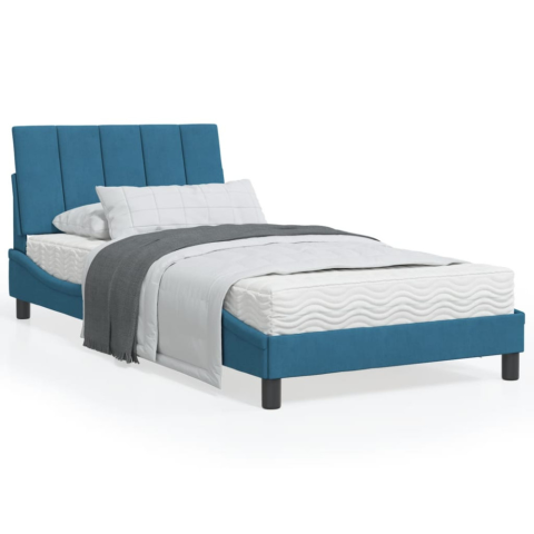 1 kép kék bársony ágykeret fejtámlával 100x200 cm
