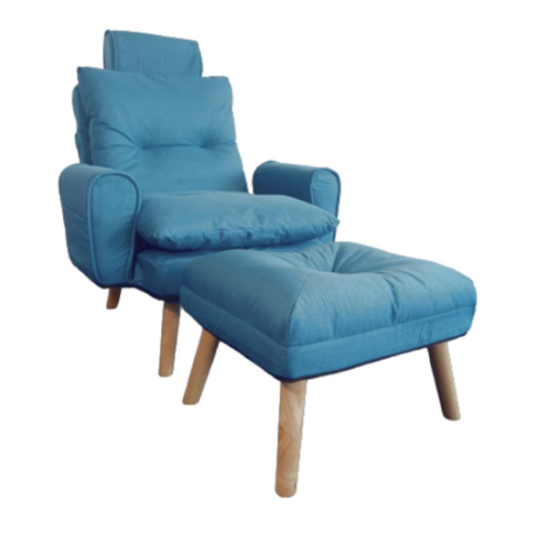 1 kép KÉK DÖNTHETŐ HÁTTÁMLÁS SKANDINÁV FOTEL LÁBTARTÓVAL (FR01vsz)