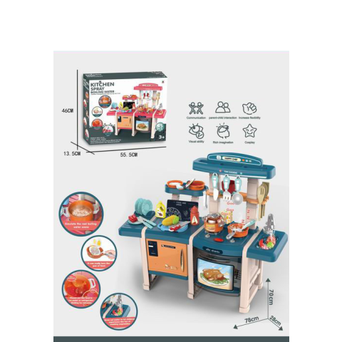 Fedezd fel a kék dupla konyhát, amely nemcsak szórakoztató, hanem fejlesztő játék is! Ez a 70 cm hosszú konyha 45 különböző elemet tartalmaz, amelyek segítenek a gyerekeknek a kreatív játékban és a szerepjátékokban. Az élénk színek