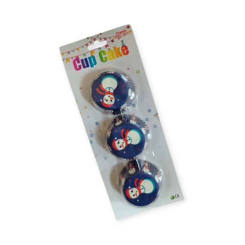 Kék színű, papír muffin kapszli, hóember mintával a talpán, melynek alsó átmérője 5 cm, magassága 3 cm