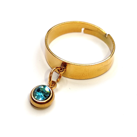 1 kép Kék kristály charmos állítható méretű gyűrű, arany színű, választható szélességben