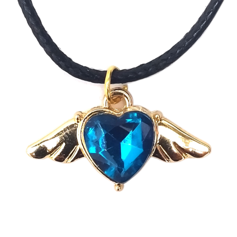 1 kép Kék kristály szív angyalszárnnyal medál bőr lánccal
