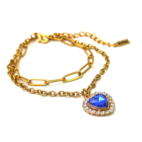 1 kép Kék kristály szív charmos rozsdamentes acél dupla karkötő, arany színű
