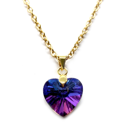 1 kép Kék kristály szív medál arany színű lánccal