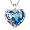 Elegáns kék szíves anya nyaklánc "Mom I Love You Forever" felirattal, csillogó kristályokkal díszítve. Tökéletes ajándék édesanyáknak