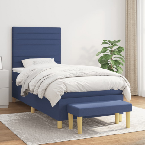 1 kép kék szövet rugós ágy matraccal 100 x 200 cm