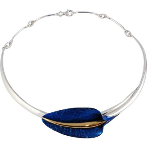 Kézzel készült ezüst nyakék titán kála virággal – Egyedi elegancia ✨ Ez a különleges nyakék 925-ös finomságú ezüstből készült, és egy kézzel formázott titán kála virág díszíti. A virág aranyozott bibéi tovább fokozzák az ékszer egyediségét, kiemelve...