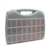 átlátszó fedlap jól záródó csatok erős strapabíró kivitel 3-24 db variálható méretű rekesz, narancs színű határolókkal Mérete: 480 x 375 x 75 mm