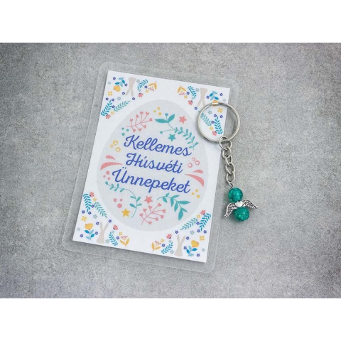 Kellemes Húsvéti pávakék angyal medálos kulcstartó kulcstartó 1 kép