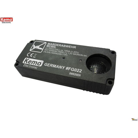 Kemo FG022 mobil elemes ultrahangos nyestriasztó készülék A KEMO FG022 elemes ultrahangos nyestriasztó készülék széleskörűen felhasználható a nyestek távoltartására. Alkalmazható fedett kocsibeállóknál, garázsokban, parkolóházakban, tetőterekben, lakóautó