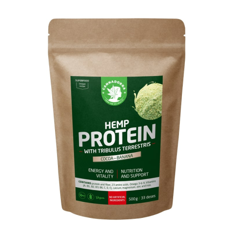 Kenderfehérje királydinnyével kakaó/banán ízesítéssel.