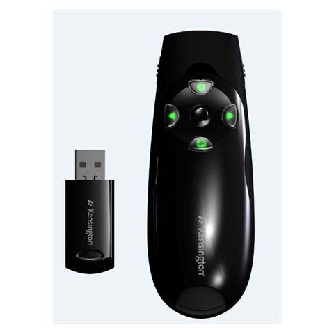 Prezentációs távirányító, zöld lézer, vezeték nélküli, KENSINGTON -zöld mutatólézerrel, amely erősebb a vörös lézernél -vezeték nélküli 2,4 GHz-es technológia -csatlakoztatás után azonnal használható, nincs szükség driver telepítésére -vezérlőben tárol