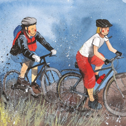 Képeslap Alex Clark borítékkal, 14x14 cm, Biciklis túrázók Ez a színes és vidám képeslap tökéletes módja annak, hogy kifejezze jókívánságait egy különleges nap alkalmából. Üdvözlőlapként és dekorációként, keretezve is használható ez a 14x14 cm nagyság