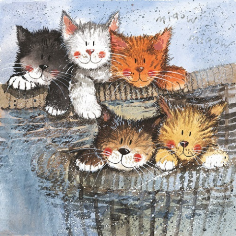 Képeslap Alex Clark borítékkal, 14x14 cm, Kiscicák Ez a színes és vidám képeslap tökéletes módja annak, hogy kifejezze jókívánságait egy különleges nap alkalmából. Üdvözlőlapként és dekorációként, keretezve is használható ez a 14x14 cm nagyságú művész