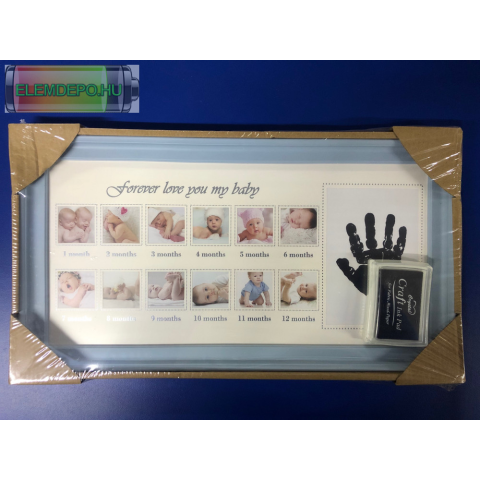 Képkeret 12 hónap kézlenyomattal kék képkeret 12 hónap színe: kék mérete: 40cm x 21cm Hogyan készítsen a babáról kéz és láblenyomatot: 1. kérjük, mossa meg a baba kezét és lábát 2.nyomja meg a tintapárnát Kérjük, ellenőrizze, hogy a baba keze és lába