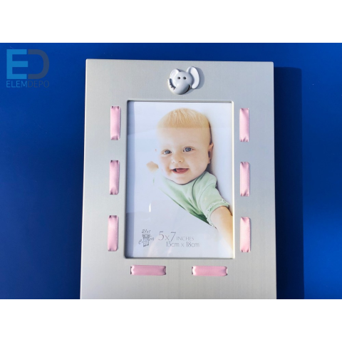 1 kép Képkeret szalaggal elefánttal 13x18cm képnek fém-plüss