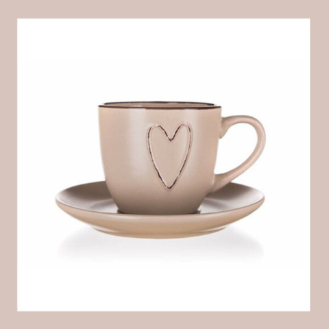 Kerámia csésze, csészealjjal HEART 260ml, bézs 60324965 bögrék, csészék termékleírás