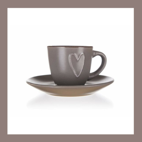 Kerámia csésze csészealjjal HEART 80ml, barna 60324964 bögrék, csészék termékleírás
