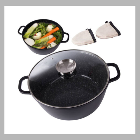 Kerámia edény 13L 07196Az edény kiváló minőségű alumíniumötvözetből készült, amelyet nyomás alatt öntöttek. Könnyű , mégis erős és hatékonyan vezeti a hőt . Ez ideálissá teszi ételek főzéséhez különféle típusú tűzhelyeken, beleértve az indukciós tűzhelyeket is.