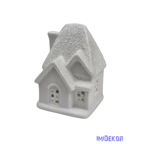 1 kép Kerámia fehér téli házikó - Csillámos tetejű C