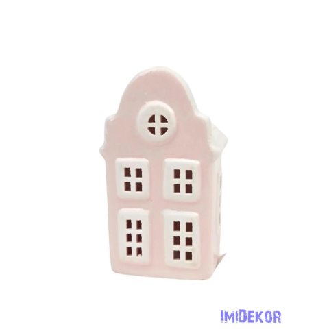 Kerámia ház 11 cm - Íves rózsaszín dekorációs kellék 1 kép