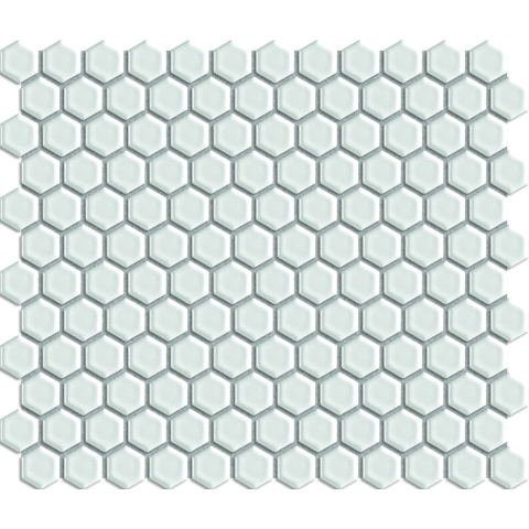 Fagyálló. Kerámia mozaik fehér színben mérete 26x30 cm vastagsága 5 mm fényes felülettel. Hatszög alakú alapelem mérete 2,6x2,6 cm