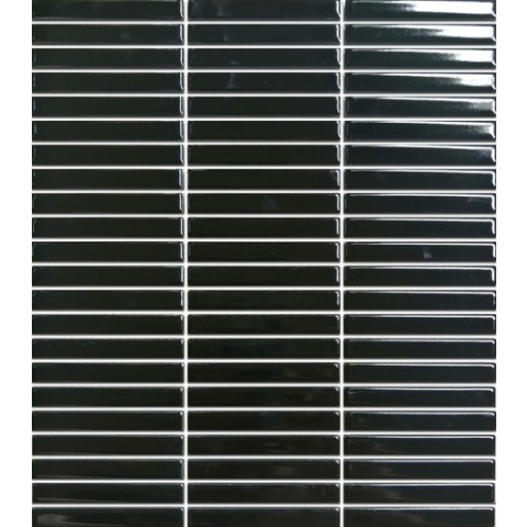 Fagyálló. Kerámia mozaik fekete színben mérete 28,2x30,8 cm fényes felülettel. Téglalap alakú alapelem mérete 1,2x9,2 cm