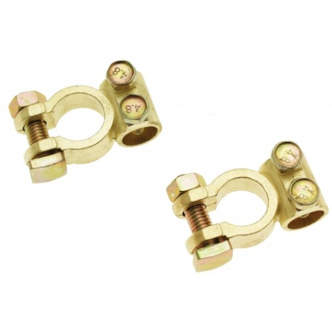 kerek kábeltartó 2 szorítócsavarral 1 pozitív és 1 negatív pólusú kerek bilincset tartalmaz Műszaki adatok: Bruttó súly 140 g Anyag Sárgaréz Blister csomagolásban Igen