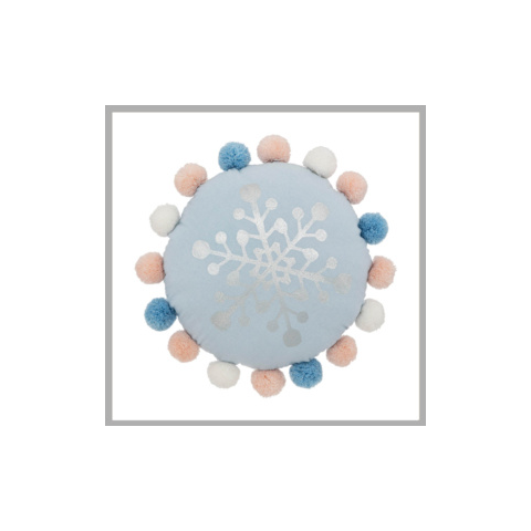 Kerek bojtos díszpárna ZTN195835- Hópehely mintás- Mérete: 35 x 35 cm- puha bojtokkal körben- kíváló minőség- Anyag: pamut/poliészter
