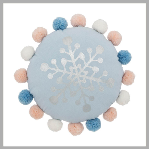 Kerek bojtos díszpárna ZTN195835- Hópehely mintás- Mérete: 35 x 35 cm- puha bojtokkal körben- kíváló minőség- Anyag: pamut/poliészter