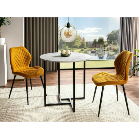 Teljes Kerek étkezőasztal ALTO II 80 cm, fehér márvány dekorációval termékleírás
